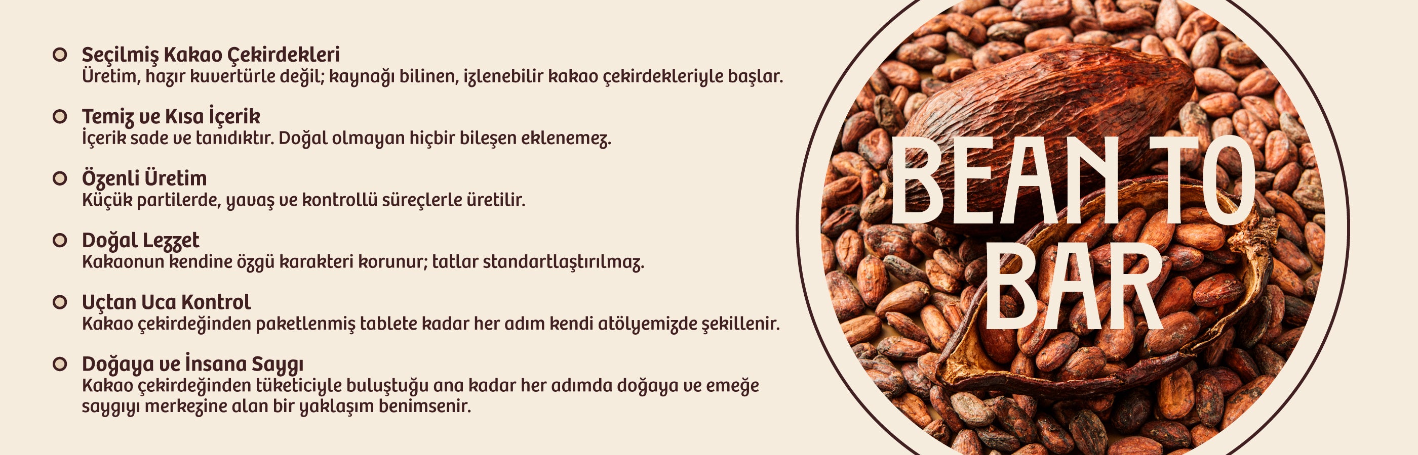 Kakao çekirdeğinden çikolataya, doğal ve yalın içerik.