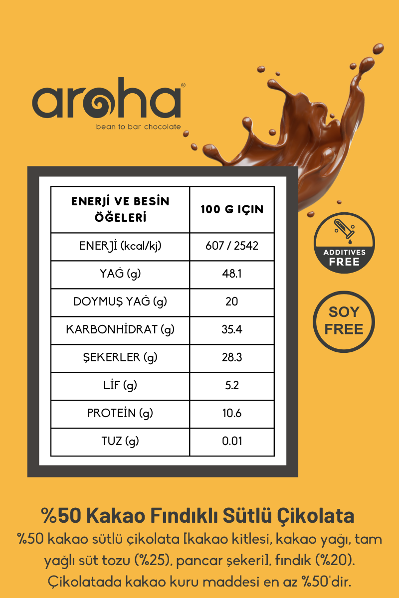 %50 Kakao Fındıklı Sütlü Çikolata 100 g
